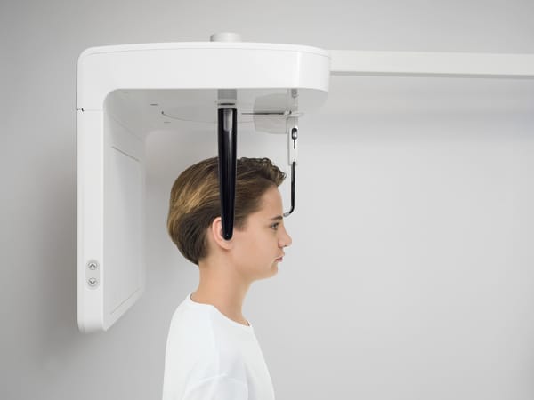 Les trois faisceaux lumineux de positionnement marquent l'orientation exacte du plan horizontal de Francfort, du plan sagittal médian et du plan de coupe. Le positionnement sans miroir garantit un contact visuel personnel et facilite la communication avec le patient.